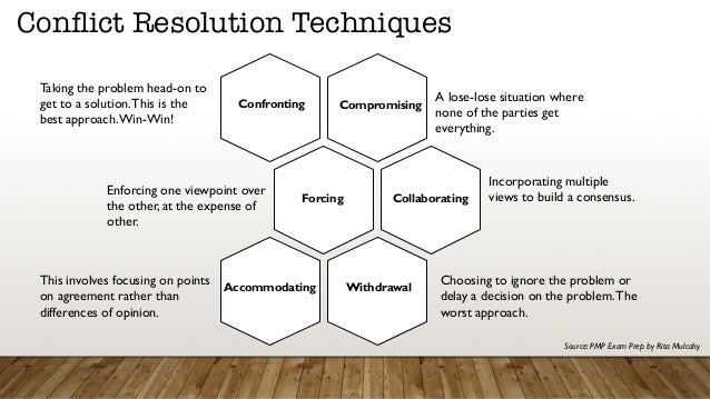 Conflict resolution techniques pmp. Strategy Description Situation Confronting Problem-solving Confronting the conflict as a problem to be solved When you have. So these are the conflict management techniques for the PMP Exam. PMP Solution 60 Conflict is inevitable in a project environment.
